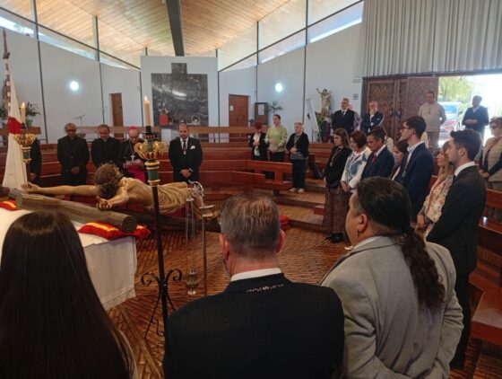“Cruz”. En el Viernes Santo contemplamos a Cristo abrazando el sufrimiento y la muerte por amor al Padre y a la humanidad. La Cruz no es el símbolo de una vida derrotada, sino de una fidelidad llevada hasta el extremo. En la Cruz, Jesús carga con el dolor de los seres humanos, nos abre un camino hacia la esperanza e instaura el reinado de Dios: el sueño del Padre de una fraternidad efectiva entre todos sus hijos e hijas. Abrazar la cruz como Jesús y con Jesús implica asumir nuestras heridas y limitaciones. Significa también aceptar el sufrimiento que comporta el compromiso de vivir con los que sufren, de defender la verdad y de construir un mundo más justo y en paz.