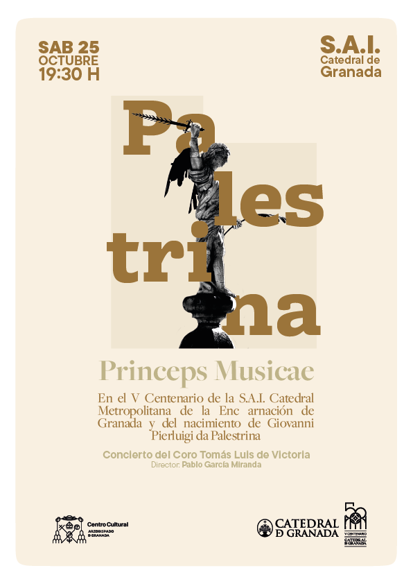 La segunda convocatoria cultural de la semana es el concierto que acoge la S.A.I Catedral el sábado día 25 con el Coro Tomás de Victoria, con obras de Pierluigi de Palestrina bajo la dirección de Pablo García Miranda. Será a las 19:30 horas y la entrada es libre hasta completar aforo.
