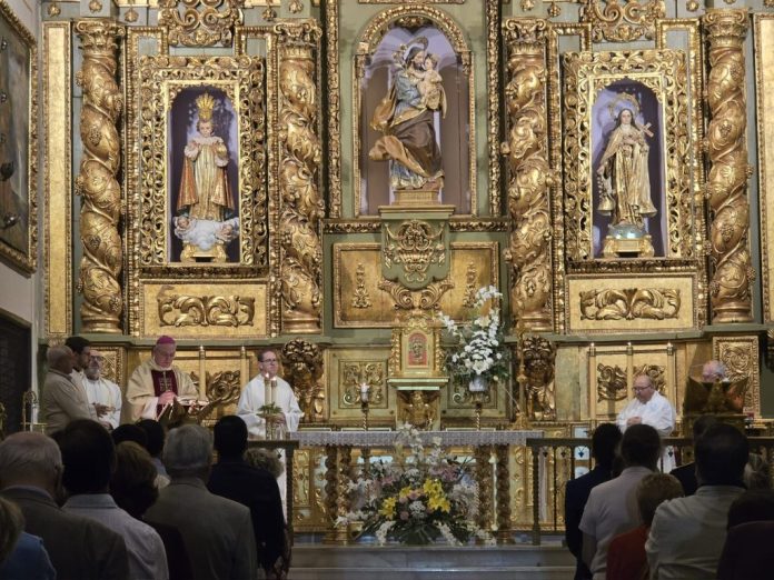 La Misa Solemne inició con procesión de entrada desde la sacristía mayor de la Iglesia Parroquial de nuestra Señora de la Asunción y estuvo amenizada por las voces de las propias madres carmelitas descalzas, desde el Coro Alto de la Iglesia Conventual. La Eucaristía fue presidida por Don Sebastián y concelebrada por el Vicario Territorial de la zona, D. Manuel Luis Anguita, y varios sacerdotes, entre ellos D. Agustín Rodríguez, Delegado Episcopal de Hermandades y Cofradías, hijo de Beas, a quien el Obispo agradeció públicamente su labor por la organización del Rosario Magno que se celebró hace unos días en la capital del Santo Reino.