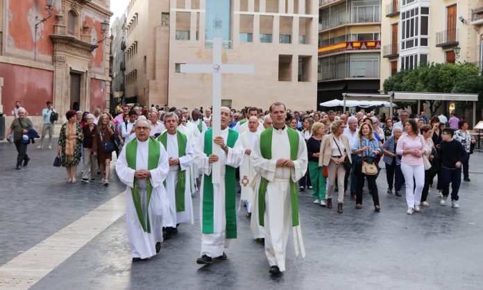 «Andando por el camino te tropezamos, Señor (…) tenían tus palabras fuerza de vida y amor, ponían esperanza y fuego en el corazón». Entonando este conocido canto, los fieles, después de realizar la estación jubilar en la Parroquia San Bartolomé de Murcia, peregrinaron a pie hasta la Catedral. Acompañados por un buen número de sacerdotes, acudieron numerosos feligreses de las parroquias de Fuente Álamo, La Unión, Lo Pagán (San Pedro del Pinatar), Torre Pacheco, San Javier, Sucina (Murcia) y de las poblaciones cartageneras de Cabo de Palos, El Albujón, Las Lomas del Albujón, La Aparecida, La Manga, La Palma, La Puebla, Los Belones y Pozo Estrecho; todas ellas pertenecientes a la vicaría del Campo de Cartagena – Mar Menor. De la zona de Cartagena acudieron feligreses de hasta once parroquias de esta ciudad.