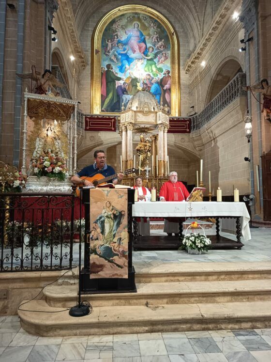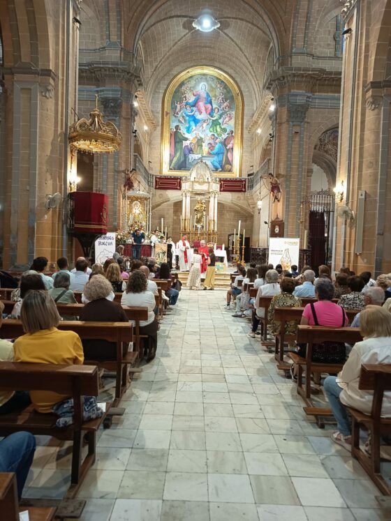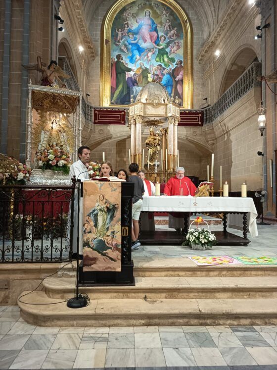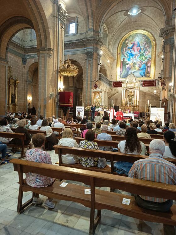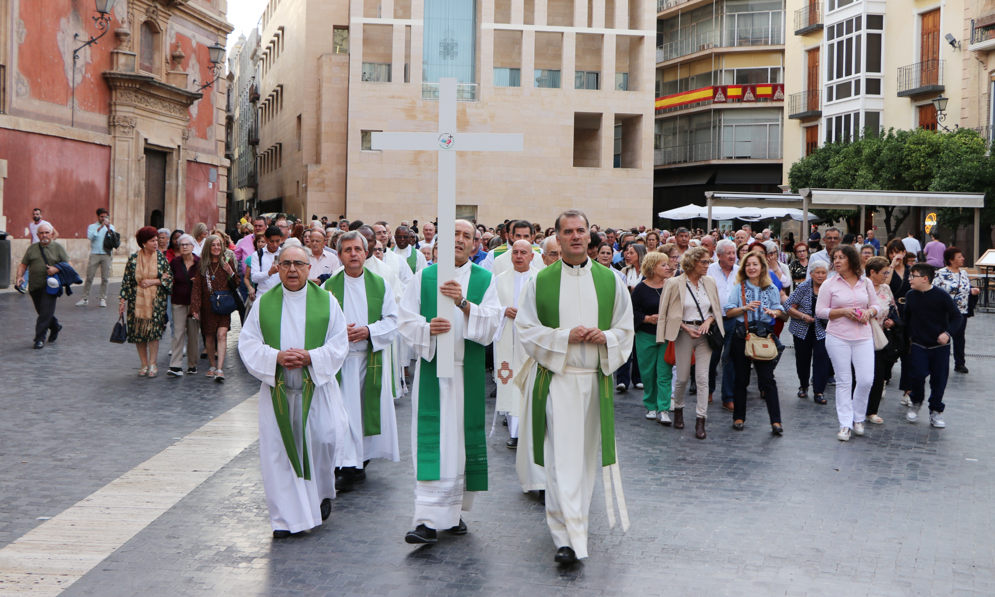 Al llegar al templo catedralicio comenzó la Eucaristía jubilar. La presidió el obispo de Cartagena, Mons. José Manuel Lorca Planes, que en su homilía se dirigió a los peregrinos: «Habéis venido para poner vuestro corazón ante Dios, para sumergirlo en su gracia que nos transforma interiormente; no sois un grupo de conformistas, sino que sois la gente que Dios ha llamado para abrir nuevos caminos; sois el pueblo de Dios que camina, y caminar juntos significa ser oyentes de la Palabra y celebrar juntos la fe, lo que nos ayudará a evangelizar con más fuerza, a transformar esta sociedad».