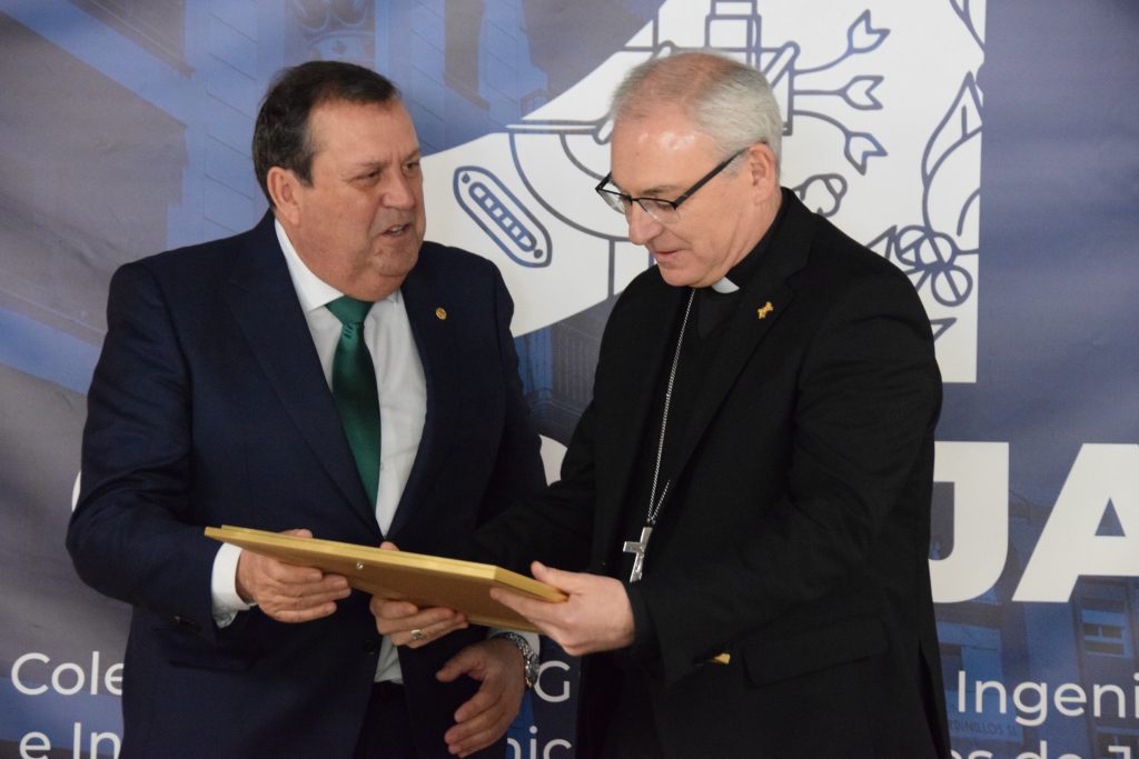 El Obispo, en sus palabras, mostró su agradecimiento y sorpresa por este reconocimiento con estas palabras. “Recibo este nombramiento como Colegiado de Honor con una profunda gratitud y con una emoción muy especial, a la vez que con cierta sorpresa. Porque este reconocimiento no es como obispo, sino que me devuelve, de algún modo, a una parte esencial de mi propia historia: la de ingeniero, la de colegiado, la de alguien que un día soñó su vida entre planos, maquinaria, centros industriales, estaciones generadoras de energía y tendidos eléctricos”. Para añadir, “formar parte, aunque sea de manera honorífica, de esta historia compartida del Colegio de Ingenieros de Jaén, que es ya mi tierra, es para mí un verdadero honor y una distinción que guardaré siempre con orgullo y con cariño en mi corazón”.