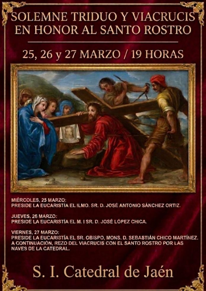 La S. I. Catedral de Jaén acoge desde este miércoles, 25 de marzo el solemne triduo en honor al Santo Rostro, que dará comienzo a las 19 horas.