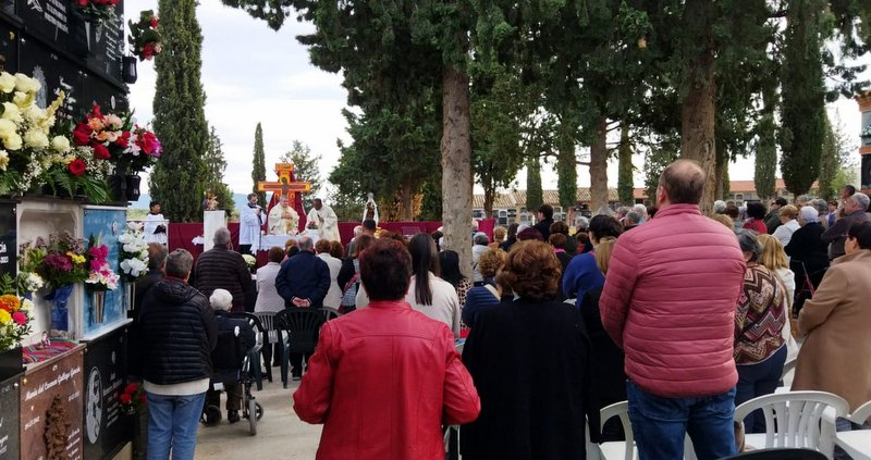 En el Día de Todos los Santos, celebrado el 1 de noviembre, tuvo lugar un año más, en Huéscar, la habitual Misa de campaña en el cementerio municipal, a las cuatro de la tarde. Un gran número de fieles se hizo presente en el camposanto para rezar por sus seres queridos. Un bello altar invitaba a la oración por todos los que allí descansan a la espera de la resurrección final.