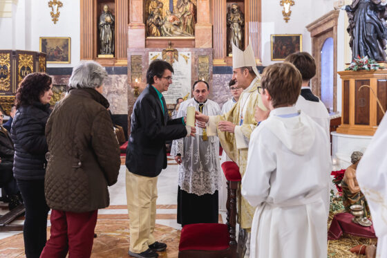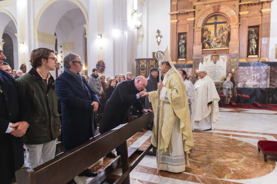 Seguidamente, monseñor Jesús Fernández ha conocido uno de los pisos que hay en Córdoba destinados a la reinserción de reclusos del centro penitenciario, en el que actualmente hay dos residentes. Ambos han compartido con don Jesús su testimonio y la ayuda que les brida este programa, que en este momento gestiona dos viviendas con el apoyo de la Junta de Andalucía, Consejería de Inclusión Social, Juventud, Familias e Igualdad, la Delegación Territorial de Córdoba y la Hermandad del Santísimo Cristo de Gracia. Precisamente para conocer la capilla de este Cristo y del Rescatado de Córdoba, el pastor de la Diócesis se ha desplazado a la parroquia de Ntra. Sra. de Gracia y San Eulogio, donde ha sido recibido por el párroco, el Padre Trinitario Manuel García, quien le ha explicado la historia que conserva este templo.