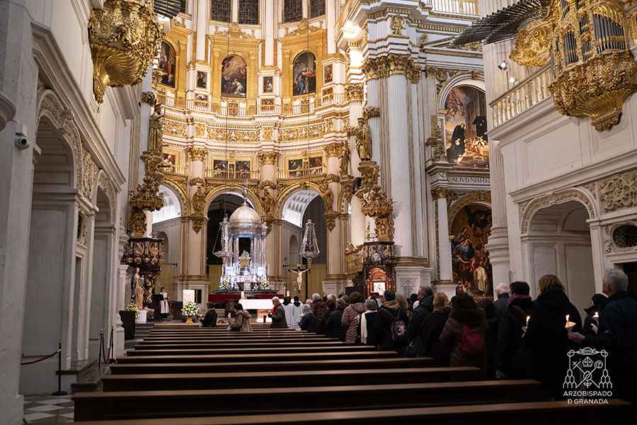 Imitad su fe. Nosotros lo hacemos a trancas y barrancas, en una sociedad compleja como la nuestra. Imitad su fe y, sobre todo, el centro que es Jesucristo. Él es el gran protector de Granada Es el gran Señor de Granada. En sus diversas imágenes en las que se nos manifiesta y en las que reconocemos, esa plasmación de la belleza que nuestros artistas y, especialmente, nuestros artistas granadinos, han sabido conjuntar esa tradición con la belleza, con su destreza de artistas y nos han mostrado en esos rostros de Cristo cómo es nuestra fe, cómo ha sido a lo largo de los siglos y se deja en ese semillero de iglesias que ha estado ahí y que, ciertamente, después con la nueva cristianización en el siglo XVI, finales del siglo XV, pero ya en el siglo XVI plenamente y, desde entonces, se ha sembrado de Iglesia. Pero no podemos dejar la fe como una cosa del pasado, como sólo para los momentos solemnes, sino los momentos de nuestra vida.