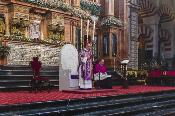 Asimismo, concelebraron la Eucaristía el Rector del Seminario y canónigo, D. Juan Francisco Ortiz, junto a los canónigos D. Juan Herrera y el canónigo emérito, D. Juan Viedma; y como maestro de ceremonias el litúrgico D. Antonio Lara. El Obispo estuvo acompañado, además, por varios seminaristas que, junto a los voluntarios de la Catedral, ejercieron el servicio del altar durante la celebración. El diácono permanente D. Manuel Rico fue el encargado de proclamar el Evangelio y el acompañamiento musical corrió a cargo del coro que dirige el canónigo organista, D. Alfonso Medina.