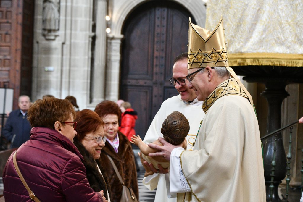 Tras la bendición final, y por última vez en este tiempo litúrgico de Navidad, el Obispo ofreció al Niño Jesús para ser venerado por el pueblo fiel, invitando a todos a reconocer en Él la luz que nos guía.