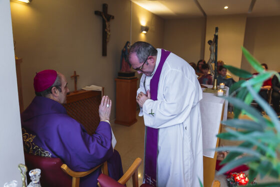 Seguidamente, monseñor Jesús Fernández ha conocido uno de los pisos que hay en Córdoba destinados a la reinserción de reclusos del centro penitenciario, en el que actualmente hay dos residentes. Ambos han compartido con don Jesús su testimonio y la ayuda que les brida este programa, que en este momento gestiona dos viviendas con el apoyo de la Junta de Andalucía, Consejería de Inclusión Social, Juventud, Familias e Igualdad, la Delegación Territorial de Córdoba y la Hermandad del Santísimo Cristo de Gracia. Precisamente para conocer la capilla de este Cristo y del Rescatado de Córdoba, el pastor de la Diócesis se ha desplazado a la parroquia de Ntra. Sra. de Gracia y San Eulogio, donde ha sido recibido por el párroco, el Padre Trinitario Manuel García, quien le ha explicado la historia que conserva este templo.