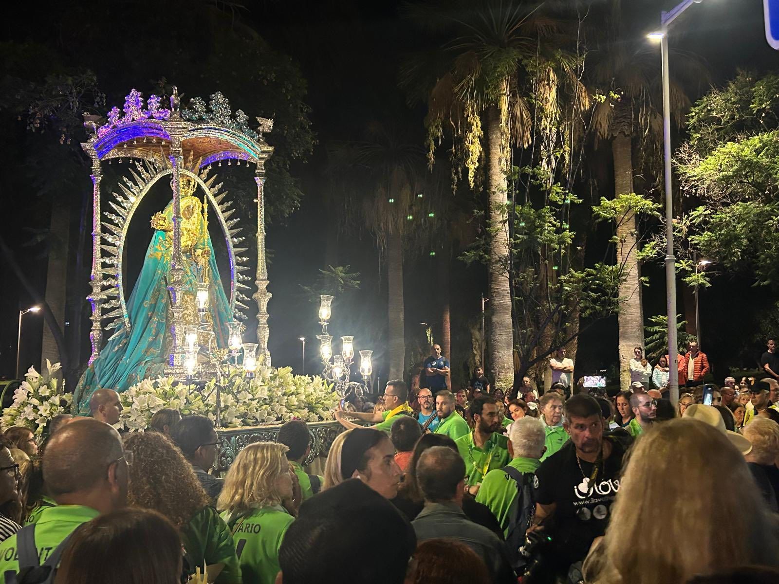 A escasos metros del templo, Juan Manuel Yanes, delegado para la Visita, valoraba positivamente el desarrollo del traslado de la imagen y destacaba la gran participación de los peregrinos. “Estamos muy satisfechos de cómo ha salido todo en las paradas oportunas. Especialmente, en la Cruz del Señor, que en esta ocasión se pudo desarrollar todo mejor que el día de la venida de la imagen a la capital. También fue muy positiva la entrada al Colegio de las Dominicas de Vistabella donde muchos alumnos se quedaron a dormir para poder recibir a la Virgen. Asimismo, en Café y Calor se cantó la salve rociera. El encuentro con los residentes del centro de mayores Virgen de Candelaria también fue muy emotivo. Y, en definitiva, ha sido significativa la entrega de los bastones de mando en todos los lugares emblemáticos de este recorrido”.