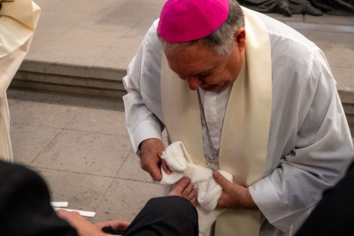 La celebración incluyó el rito del lavatorio de los pies, uno de los momentos más significativos de esta liturgia, que recuerda el mandamiento del amor fraterno.
