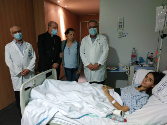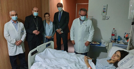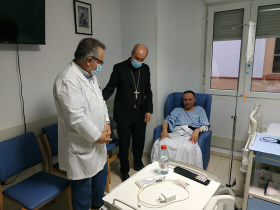 Los pacientes ingresados han agradecido la visita al Obispo y han departido con él sobre otros temas como la afición al senderismo de otra paciente que pretende hacer el camino de Santiago tras su total recuperación. Al final de la conversación, la mujer ha mostrado una medalla del Apóstol que el Obispo ha bendecido. Su familia ha agradecido al Obispo su visita, al igual que otra pareja, cuya mujer está a la espera del alta hospitalaria.