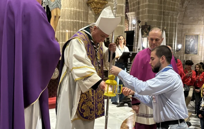 Este pasado viernes 19 de diciembre, la Santa Iglesia Catedral acogió la tradicional celebración de la Luz de la Paz de Belén, presidida por el Obispo de Asidonia-Jerez, Monseñor José Rico Pavés, reunió a scouts, familias, seminaristas, clero diocesano y numerosos fieles. Un momento profundamente simbólico en plena antesala del cuarto domingo de Adviento, para preparar los corazones a la venida del Señor.