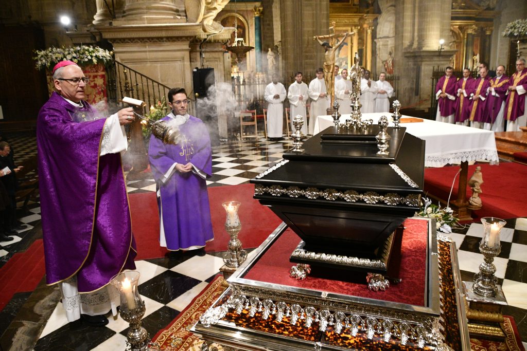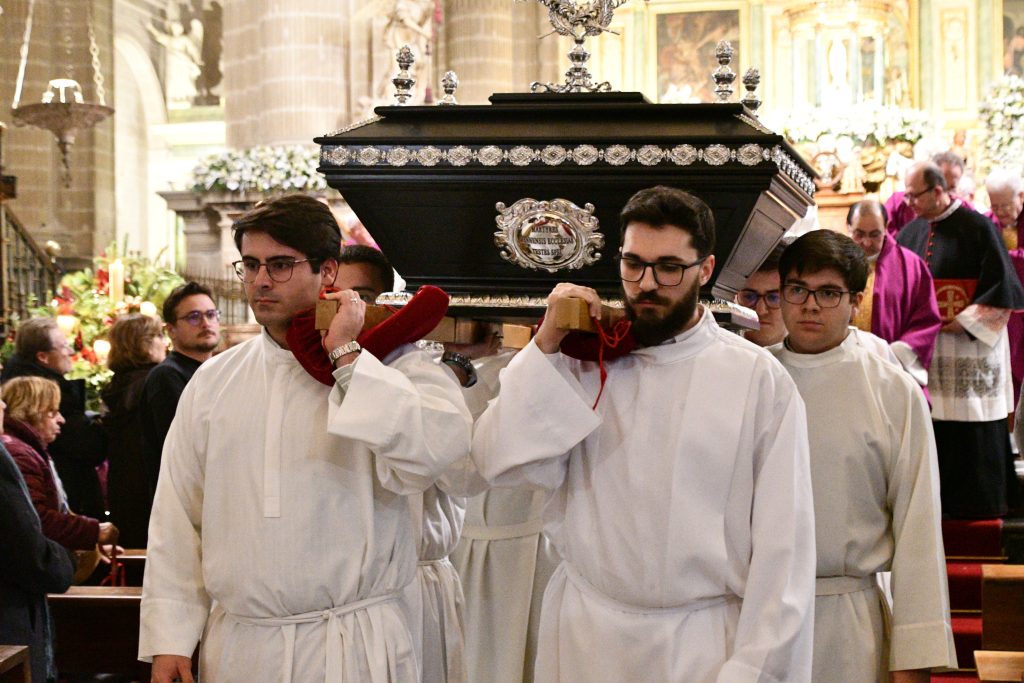 Al finalizar la celebración y rezar juntos la oración de los mártires, la urna con las reliquias, que desde el pasado sábado se encontraba en el presbiterio, fue traslada en procesión a hombros de los seminaristas hasta la capilla de San Pedro Pascual, donde podrá recibir veneración de los fieles.