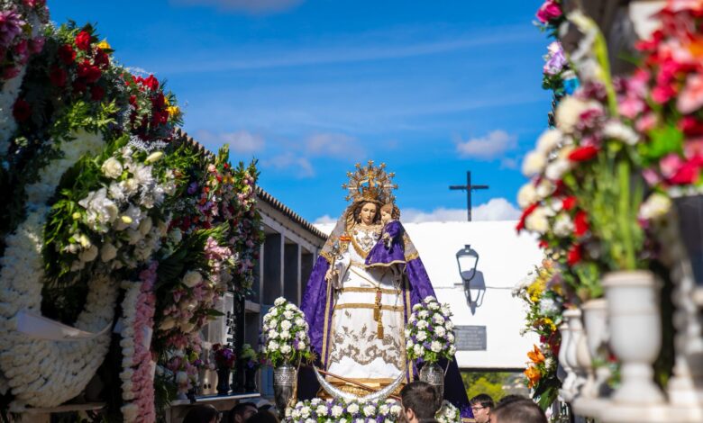La imagen salió de su ermita a las 11:00 h y, tras un recorrido acompañado por numerosos fieles, llegó a la explanada del camposanto, donde se rezó el Santo Rosario y se celebró la Eucaristía, presidida por el párroco y consiliario de la Hermandad, D. Cristo José Acién Mayor.