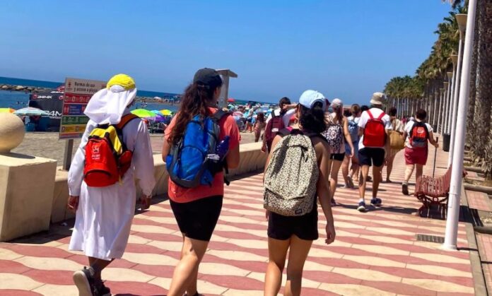 Un buen grupo de Jóvenes de la diócesis de Almería, junto a los responsables de la Pastoral Juvenil, salieron ayer domingo con el fin de preparar las jornadas a pie del próximo Camino de Santiago que concluirá en la Peregrinación Europea de la Juventud. Fue una marcha por la costa desde la Universidad al Toyo y de nuevo a la Universidad.