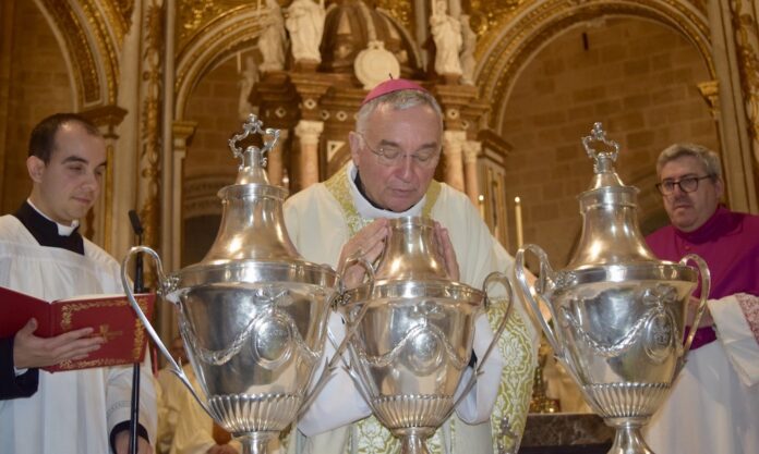 Durante la celebración se bendijeron los óleos sagrados —de los enfermos, de los catecúmenos y el santo crisma— que serán distribuidos posteriormente a todas las parroquias de la diócesis para su uso en los sacramentos. La Eucaristía estuvo acompañada musicalmente por el cuarteto Anacrosa, que contribuyó a realzar la solemnidad del momento.