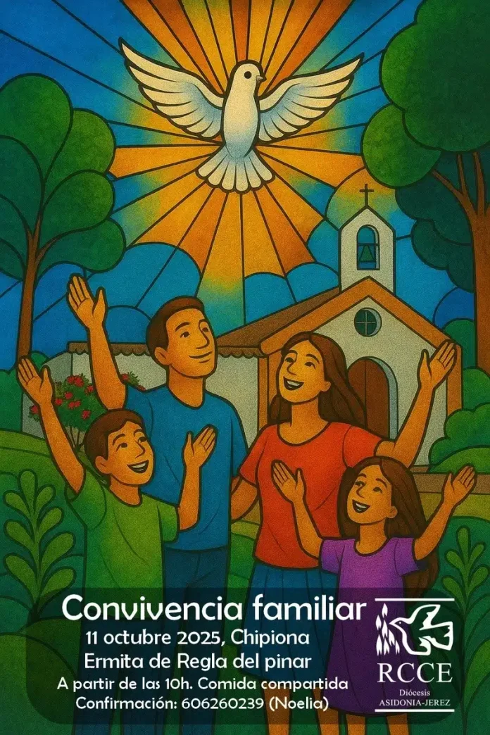 La Renovación Carismática Católica en el Espíritu (RCCE) de la Diócesis de Asidonia-Jerez ha convocado una jornada de convivencia familiar que tendrá lugar el próximo viernes 11 de octubre en el entorno natural del pinar de Chipiona, junto a la Ermita de Regla, a partir de las 10:00 horas y hasta las 17:30 horas.