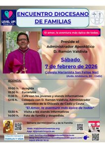 La Diócesis de Cádiz y Ceuta celebrará el sábado 7 de febrero el Encuentro Diocesano de Familias, una jornada pensada como espacio de reflexión, convivencia y celebración de la familia y de la vida desde la fe cristiana. El encuentro tendrá lugar en el Colegio Marianista San Felipe Neri, en la ciudad de Cádiz, y se enmarca en la Semana del Matrimonio y de la Familia, que este año se celebrará del 7 al 15 de febrero en toda España.