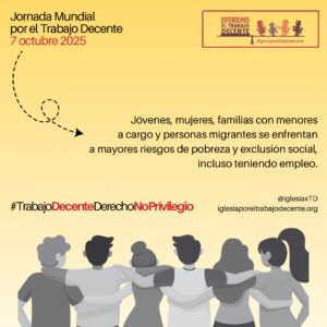 Con motivo de la Jornada Mundial por el Trabajo Decente, que se celebra el próximo 7 de octubre, las organizaciones que integran la iniciativa Iglesia por el Trabajo Decente (ITD) se suman, un año más, a millones de trabajadores y trabajadoras de todo el mundo para recordar que el trabajo decente es un derecho irrenunciable, nunca un privilegio.