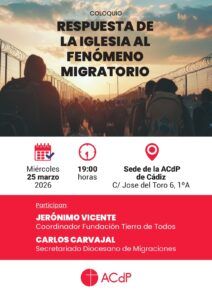 La Asociación Católica de Propagandistas (ACdP) celebrará mañana, miércoles 25 de marzo, la quinta sesión de su ciclo Dignidad y persona con un coloquio titulado Respuesta de la Iglesia al Fenómeno Migratorio, una cita que busca profundizar en uno de los debates sociales y éticos más relevantes de la actualidad.