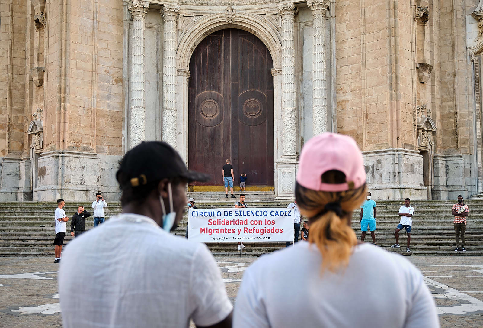 Reunidos, como es costumbre, en la Plaza de la Catedral de Cádiz, a través de la lectura de un manifiesto se denunció que «sólo durante el pasado fin de semana alrededor de 700 migrantes llegaron a las costas españolas, la mayor parte de ellos a las Islas Canarias, y al menos 182 a las costas de Andalucía en diez pateras y una rueda de camión».