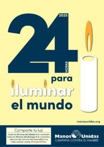 La XIII edición de las 24 Horas de Manos Unidas se enmarca en la campaña «Compartir es nuestra mayor riqueza». «La luz que compartimos nos recuerda que ninguna oscuridad es definitiva y que cada gesto de solidaridad tiene el poder de abrir caminos de esperanza. Compartir la luz es abrir el corazón. Es reconocer que lo que tenemos -tiempo, ternura, escucha, recursos- se multiplica cuando se da».