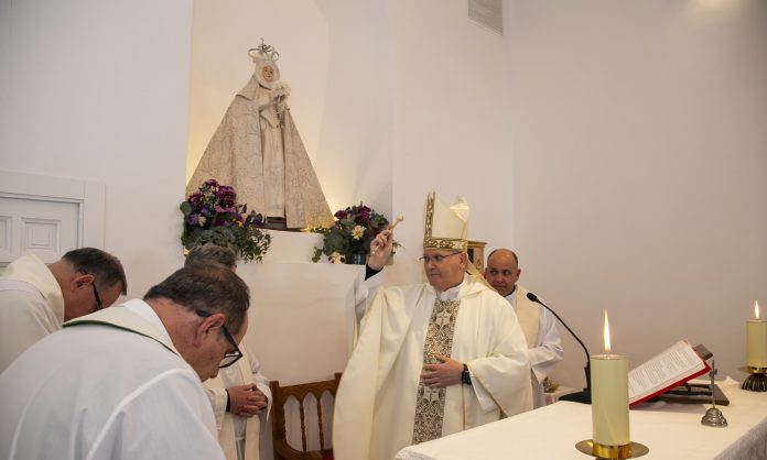 «El obispo expresó su alegría porque se haya podido recuperar el culto en este lugar después de tantos años, como deseaban los feligreses de Baños y Mendigo y, en concreto los de esta urbanización», destaca el párroco Francisco Saorín Guillamón de las palabras de Mons. Lorca Planes, con las que también quiso poner el foco en este día en que, además del «regreso de la Virgen a su casa, lo más importante es la presencia de Dios en el Sagrario». El obispo entregó al párroco la llave del Sagrario, un gesto que simboliza la entrega y custodia de este templo.