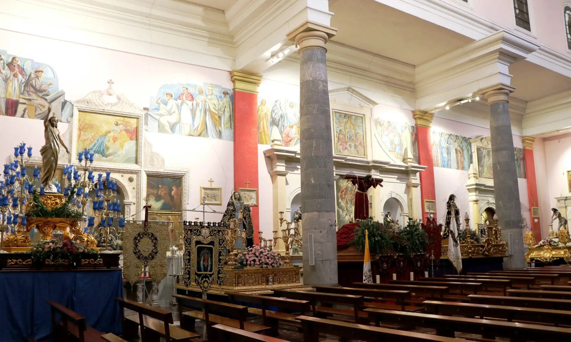 Uno de estos templos es la Parroquia San Antolín, que custodiará hasta el sábado el Santísimo Cristo de la Columna, de la hermandad del mismo nombre de Jumilla; el Santísimo Cristo del Rescate, del Paso Blanco de Lorca; el Cristo de la Esperanza, de la Hermandad de San Pedro Apóstol de Alcantarilla; la Virgen de los Dolores, patrona de Águilas, de la Cofradía de Nuestra Señora Virgen de los Dolores; y Nuestro Padre Jesús Resucitado, de la cofradía del mismo nombre de Cartagena.