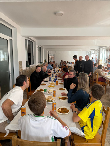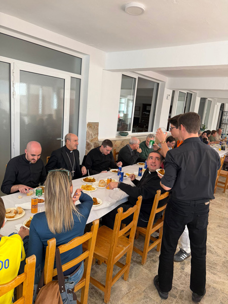 Monseñor Jesús Fernández no quiso perderse esta cita tan especial y compartió con los niños y sus familias la comida
