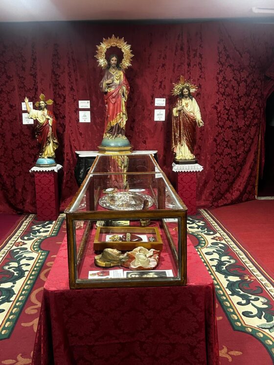 La muestra, como ha explicado el párroco, Mario González, es “una experiencia de Dios”. Ofrece la posibilidad de ver imágenes del Señor, tanto de domicilios particulares como de los conventos y parroquias de Cabra; por otro lado, hay una parte formativa, a través de un audiovisual se cuenta la historia de la devoción al Corazón de Jesús; también hay tiempo para la oración, con la presencia de Jesús vivo en el Sagrario, y por último, hay un lugar destinado a las peticiones, que cada uno personalmente podrá depositar y que posteriormente serán llevadas a un convento de clausura para que recen por las necesidades confiadas por los visitantes.