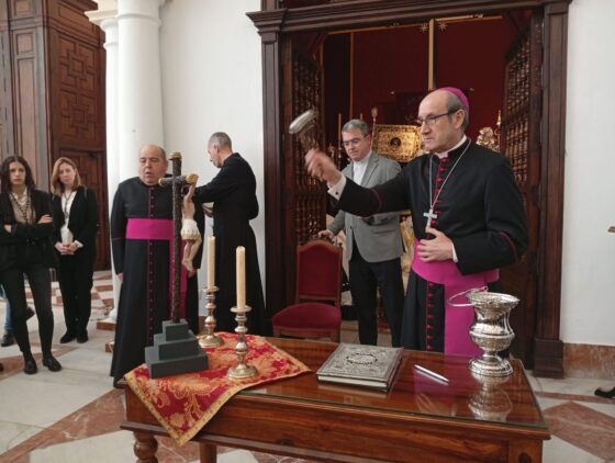 La primera que ha recibido al pastor de la Diócesis ha sido la Hermandad de Nuestro Padre Jesús de los Afligidos en su Sagrada Presentación al Pueblo, Ntra. Sra. Reina del Cielo y Misericordia y San Vicente Ferrer.