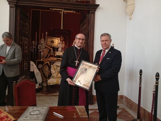 La Hermandad de Cañero ha recibido al pastor de la Diócesis el día en el que entrará por primera vez en carrera oficial