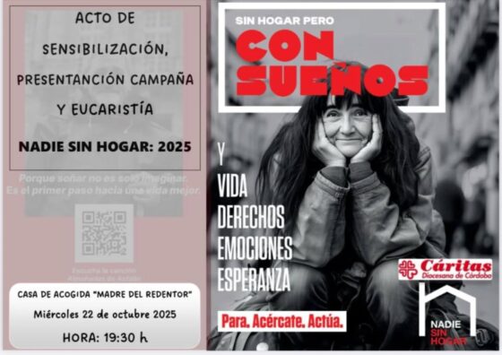 “Sin hogar pero CON SUEÑOS” es el lema de la campaña Sin Hogar 2025 que ha presentado Cáritas Diocesana. El obispo de Córdoba, monseñor Jesús Fernández, participó en la presentación de la campaña el pasado 22 de octubre en la Casa de Acogida “Madre del Redentor”, donde el prelado presidió la eucaristía y compartió un rato con los residentes.