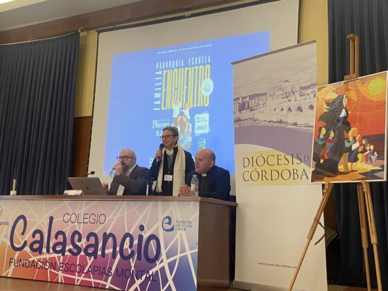 Las Delegaciones Diocesanas de Catequesis, Familia y Vida, Medios de Comunicación y Enseñanza han celebrado hoy el encuentro “Familia-Parroquia-Escuela”. Esta nueva cita ha tenido lugar en el Colegio Calasancio con el lema “Un mundo (IN)feliz. El héroe en busca de sentido”. Este año el ponente ha sido Diego Blanco Albarova, investigador cultural, guionista y productor de TV y colaborador en la creación de contenidos culturales y de pastoral de la Universidad San Pablo-CEU (entrevista en Iglesia en Córdoba). El obispo de Córdoba, monseñor Jesús Fernández ha presido la eucaristía con la que se ha puesto fin al encuentro.