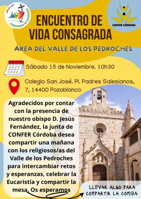 El encuentro será en el colegio San José de los padres Salesianos en Pozoblanco. Comenzará a las 10:30 horas, con una oración comunitaria, a la que seguirá la intervención del Obispo, quien presentará el sentido y los objetivos de la visita. El presidente de CONFER, Paco Martínez, será, a continuación, el encargado de la reflexión sobre la importancia de la vida religiosa en el contexto actual. Está prevista también una breve presentación de las comunidades y congregaciones asistentes. Tras una reflexión guiada basada en la homilía del Papa en el Jubileo de los Religiosos, habrá un momento de reflexión personal.