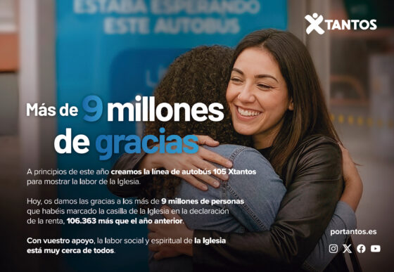 Atendiendo a las declaraciones conjuntas de la renta, son más de 9 millones los contribuyentes que marcan la X en favor de la Iglesia católica, quienes han confiado en la labor de la Iglesia y a los que el Secretariado para el Sostenimiento de la Iglesia ha dedicado una campaña para agradecer la confianza y respaldo denominada “Más de 9 millones de gracias”, que se puede consultar en la web de Xtantos.