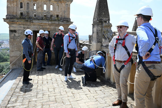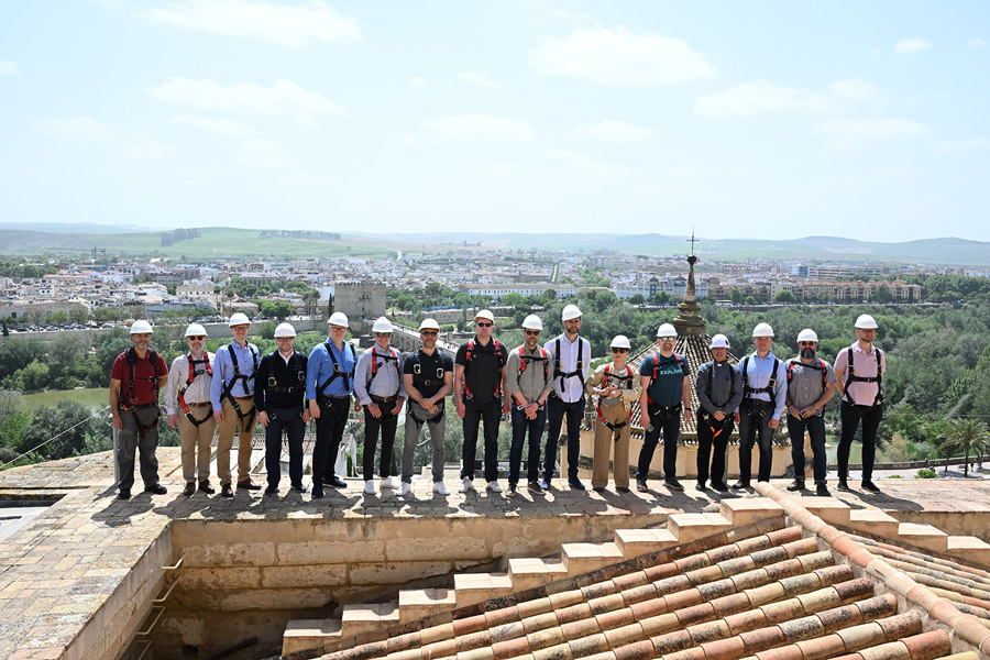 Durante su estancia, los directivos fueron recibidos por los responsables de la institución capitular y el equipo técnico de conservación, quienes les acompañaron en un detallado recorrido por el interior de la Mezquita-Catedral. El momento central de la visita tuvo lugar con la subida a las cubiertas del edificio, un espacio de vital importancia estructural. En este emplazamiento, la directiva de Marioff pudo conocer de primera mano y sobre el terreno el alcance de las futuras obras de prevención y protección contra incendios que el Cabildo Catedral tiene proyectadas. Esta futura intervención supone un paso histórico en la mejora del Plan de Autoprotección del monumento en cuanto a la detección y extinción en caso de incendio, garantizando los más altos estándares tecnológicos de seguridad sin alterar su incalculable valor patrimonial.