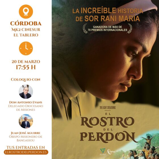 La película “El Rostro del perdón” se proyectará en los cines MK2 Cinesur El Tablero este viernes, 20 de marzo, a las 17:55 horas. Al finalizar la proyección tendrá lugar un coloquio con el Delegado Diocesano de Misiones, Antonio Evans, y el obispo misionero de Bangassou, monseñor Juan José Aguirre. Las entradas se pueden adquirir a través de su página web.