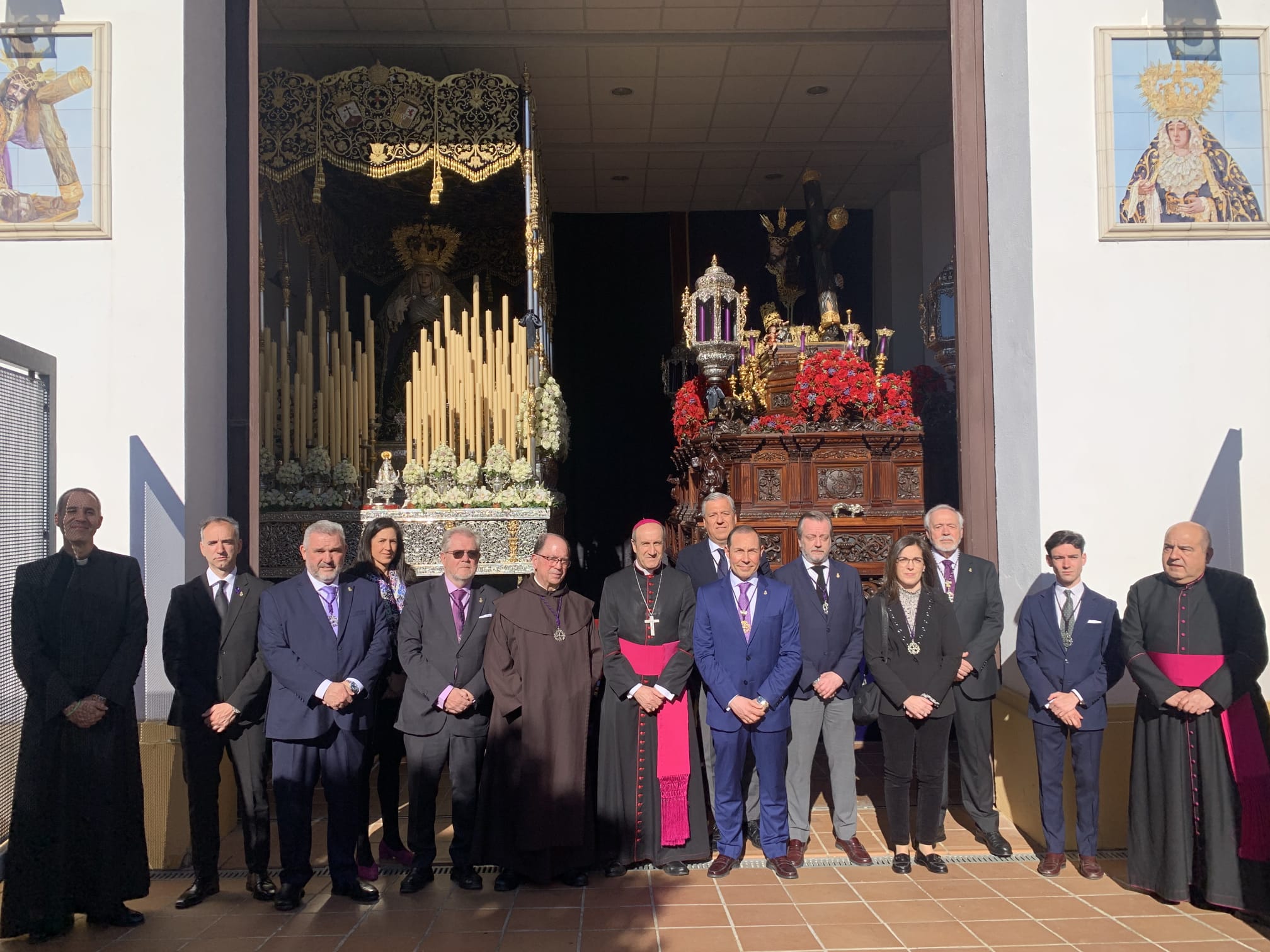 La Hermandad del Caído, que cada año hace su estación de penitencia la tarde del Jueves Santo, recibe al prelado en su sede canónica