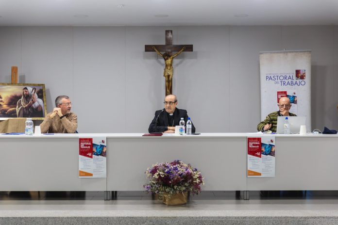 Monseñor Jesús Fernández acudió este jueves a la inauguración de las XIX jornadas diocesanas de Pastoral del trabajo “El mundo obrero y del trabajo en este cambio de época. Retos para la Iglesia”. El prelado comenzó su intervención destacando que la Jornada debe servir para “mirar juntos la realidad del mundo laboral a la luz del Evangelio”, convencidos de que el trabajo no es sólo un medio de vida y un sustento necesario sino una “dimensión esencial de toda vida”. San Juan Pablo II en su encíclica Laborem Exercens recordaba que el trabajo humano es la clave esencial de toda la cuestión social.