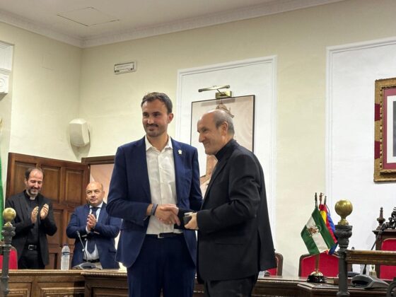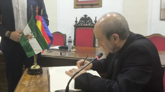 A continuación, el prelado acudió al Ayuntamiento donde el alcalde le dio la bienvenida y firmó en el libro de honor del mismo, a la vez que recibió el escudo de Villanueva de Córdoba en recuerdo de su primera visita oficial a la localidad.