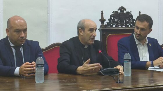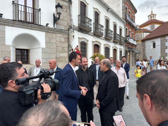 El obispo de Córdoba, monseñor Jesús Fernández, visitó el miércoles, 8 de octubre, la localidad de Villanueva de Córdoba, donde fue recibido por las autoridades locales, representantes de las Hermandades de Villanueva y Pozoblanco de la Virgen de Luna, cofradías y fieles a su llegada a la Plaza de España.