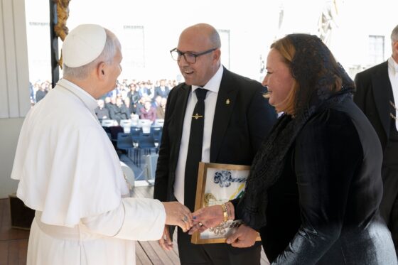 Asimismo, el alcalde presentó al Papa León XIV un cuadro con tres medallas, la de Rute, la de la patrona, la Virgen del Carmen, y la de la Virgen de la Cabeza, la otra gran advocación mariana de la localidad. El Santo Padre bendijo el cuadro, que a partir de ahora estará en el Ayuntamiento de Rute “como símbolo de fe y de la unidad de todos los vecinos”.