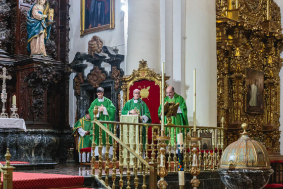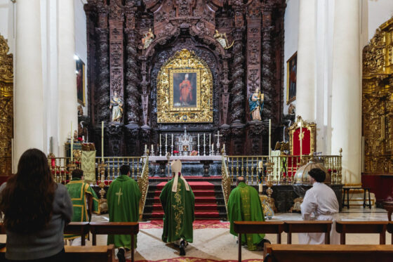 El obispo de Córdoba, monseñor Jesús Fernández, presidió la celebración en la parroquia del Salvador y Santo Domingo de Silos (La Compañía) acompañando así a las parejas y jóvenes que acudieron a la cita.