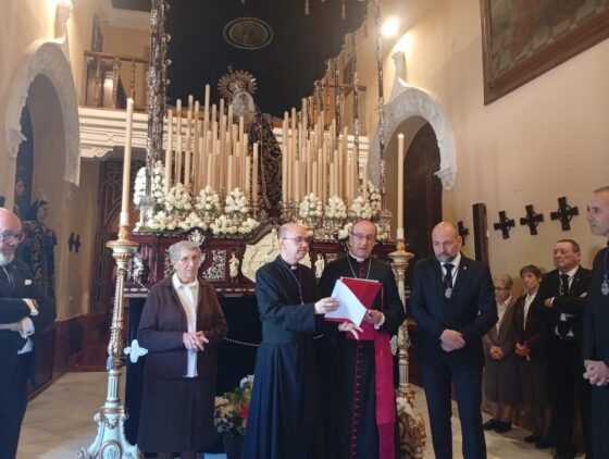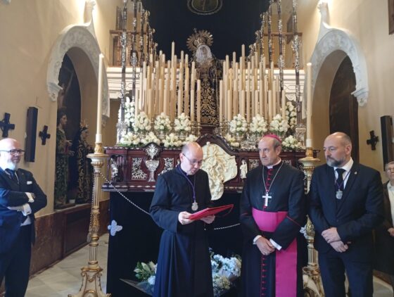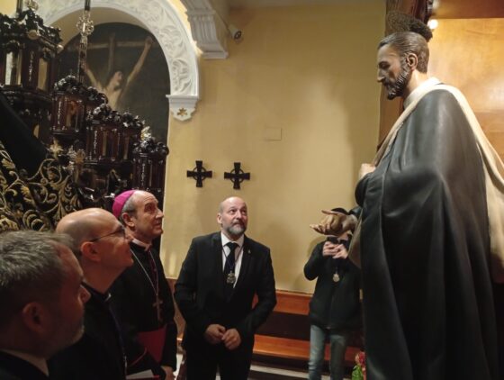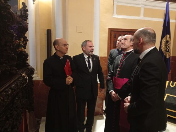 Durante la visita, en la que monseñor Jesús Fernández ha estado acompañado del Delegado de hermandades, José Juan Jiménez Güeto, y el consiliario, Juan José Romero Coleto, han estado presentes, además de los miembros de la junta directiva, el alcalde de Córdoba, José María Bellido, la Delegada de Cultura y Patrimonio Histórico, Isabel Albás, y el Delegado de Fiestas y Tradiciones, Julián Urbano, entre otros.