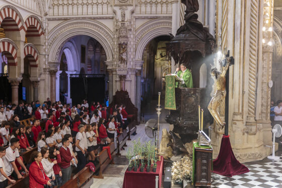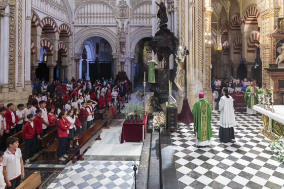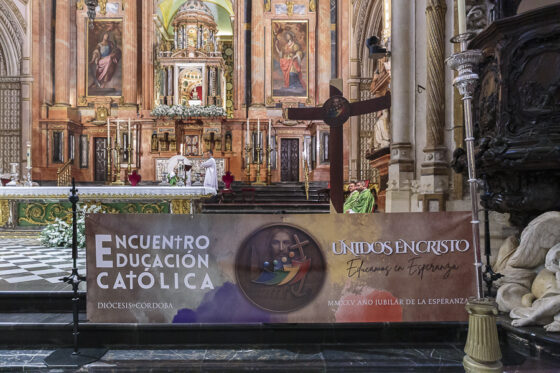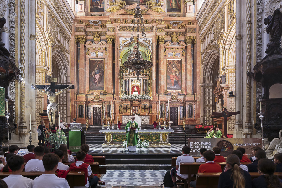 La Delegación de Enseñanza ha celebrado este miércoles, 29 de octubre, el IX encuentro de educación católica en la Santa Iglesia Catedral. Más de 1.000 alumnos de 1º, 2º y 3º de la ESO de 16 centros han participado en el encuentro junto al obispo de Córdoba, monseñor Jesús Fernández. Esta cita anual quiere ser una experiencia compartida de fe, unidad y alegría, en la que los alumnos descubran que la verdadera esperanza está en Cristo y que la educación cristiana es un camino para crecer en el Señor y transformar la sociedad.