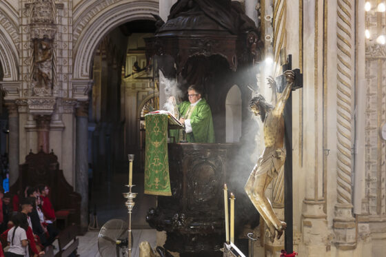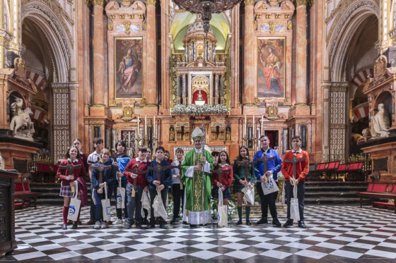 En su homilía el Obispo ha reconocido que le alegra la presencia de tantos alumnos en la iglesia madre de la Diócesis y les ha recordado que la Iglesia celebra este año el Año Jubilar de la Esperanza, declarado por el Papa Francisco al detectar que nuestro mundo necesita esperanza. La esperanza cristiana es “la esperanza de ser salvados del pecado, de la muerte y de los males que nos atenazan”, ha apuntado el prelado. Creemos que Jesús nos puede salvar se esos males radicales porque si existimos es porque Dios nos ama y nos ha llamado a la vida y a la fe y nos sostiene.
