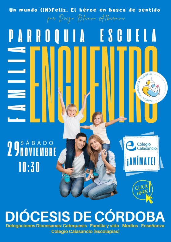 Las Delegaciones Diocesanas de Catequesis, Familia y Vida, Medios de Comunicación y Enseñanza están preparando un nuevo encuentro “Familia-Parroquia-Escuela”. Esta nueva cita tendrá lugar el próximo 29 de noviembre, a las 10:30 horas, en el Colegio Calasancio con el lema “Un mundo (IN)feliz. El héroe en busca de sentido”. Este año el ponente será Diego Blanco Albarova, investigador cultural, guionista y productor de TV y colaborador en la creación de contenidos culturales y de pastoral de la Universidad San Pablo-CEU. El Delegado Diocesano de catequesis, Adolfo Ariza, ha asegurado que el ponente “nos ayudará a descubrir el lugar de la narrativa en la transmisión de la fe”. Adolfo ha reconocido que el encuentro es una “magnífica expresión de lo que en la Iglesia es la transmisión de la fe”, porque durante el mismos, catequistas, maestros, profesores de Religión y familias “descubren la vocación a la que son llamados de transmitir la fe”.
