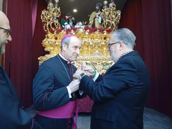 Durante la visita ha estado acompañado, como en días anteriores, por el Delegado de hermandades y cofradías, José Juan Jiménez Güeto, y el consiliario, Juan José Romero Coleto. En la parroquia lo han recibido el párroco y consiliario de la hermandad, Tomás Pajuelo, el hermano mayor, Manuel Ángel Bonilla, y miembros de la misma. El hermano mayor ha entregado la medalla de la hermandad y ha tenido oportunidad de rezar frente al monumento, preparado para la celebración de la tarde de este Jueves Santo.
